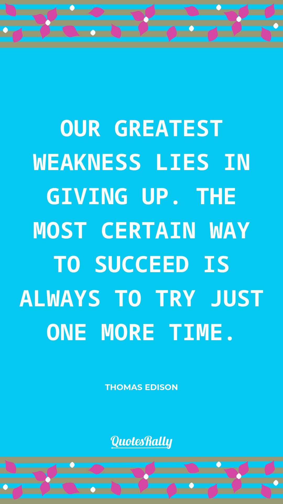 Our greatest weakness lies in giving up. The most certain way to succeed is always to try just one more time.